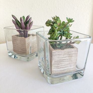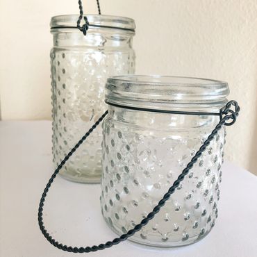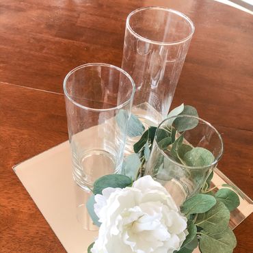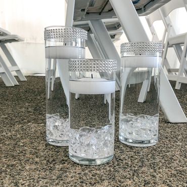 We have a large variety of glassware and lanterns for you to build center pieces and have that romantic candlelight glow. The clear glass crystals you see in some of the photos is also available for you to use. Flame-lit candles are included however we do have plenty of electric tea light candles available for your use.